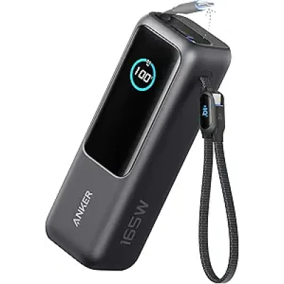Anker Laptop Power Bank, 25,000mAh Portable Charger with Triple 100W USB-C Ports, Built-in Retractable Cables, Flight-Approved for Travel, iPhone 16/15 Series, MacBook, Samsung, and More